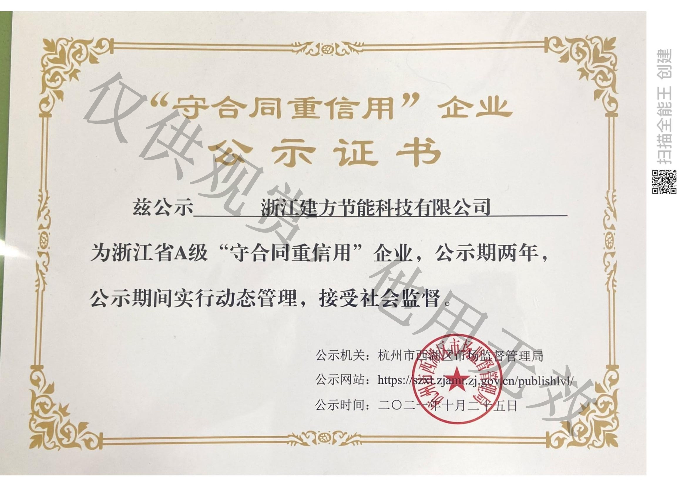 “重合同守信用”企業(yè)公示證書